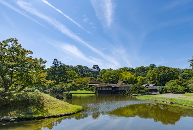 彦根城的建筑除了自古留传下来的部分,还包含后来人们精心重建的封建时代建筑,其中就有一家博物馆,馆内陈列着井伊氏一族的部分藏宝,以及其他反映井伊氏统治和居住时期家族风貌的展品。玄宫园坐落在彦根城城边,建于 1677 年,是一座漫步式庭园,园内可品抹茶,尝糕点,十分惬意。