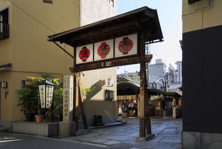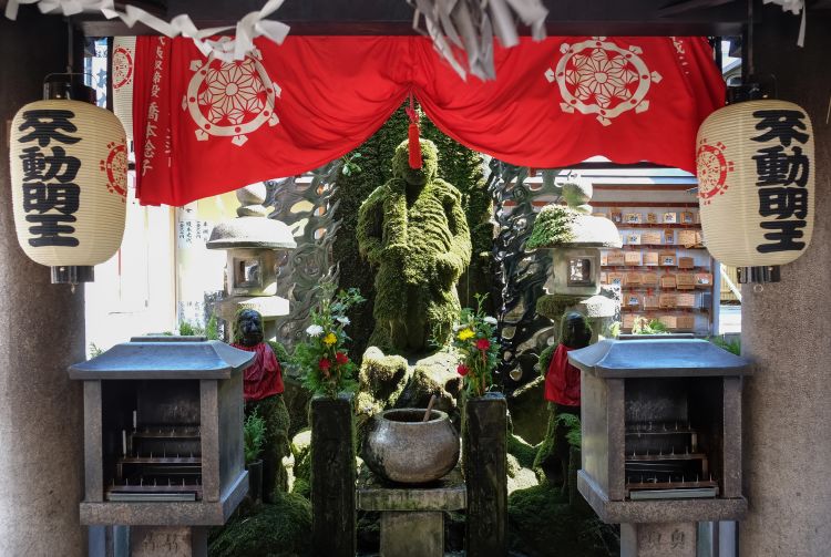 法善寺最有名的当属不动明王雕像,当地居民亲切地称其为水挂不动尊。传统的游览方式是找到不动明王雕像,并用水洒雕像。据说这能为您开运。您会发现雕像从头到脚长满青苔,这是成千上万名游客洒水而形成的景象。