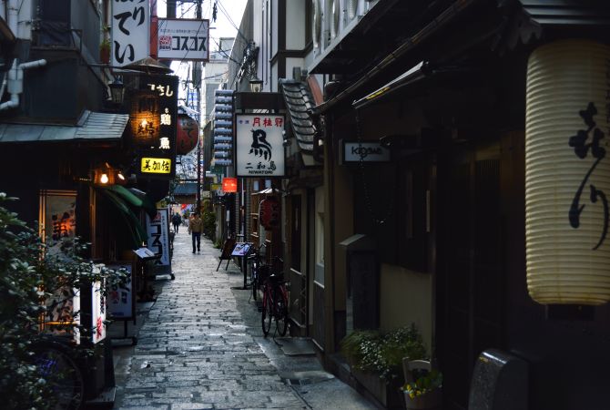 从道顿堀穿过覆盖拱廊的街道,前往难波站,很难想像这座城市几个世纪以前的模样。然而,法善寺就静静隐匿于这喧嚣闹市中心,保留了一抹古日本的韵味。