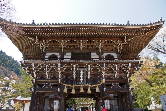 善峰寺占地十分广阔。山脚下的大门入口处后方即为主厅。主厅旁是宝物室,内部陈列寺庙的相关文物展示品。