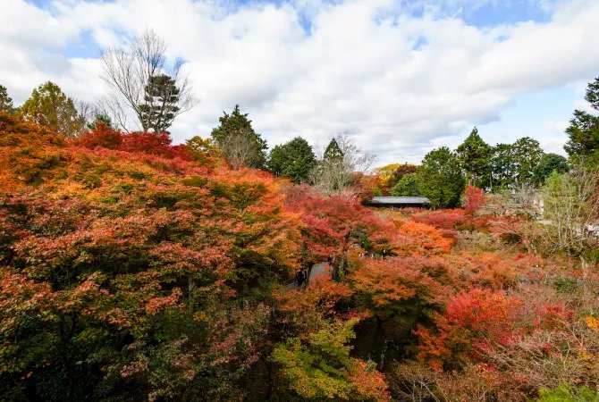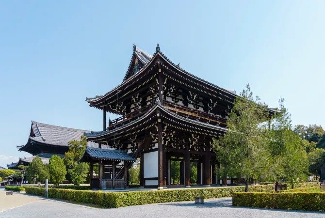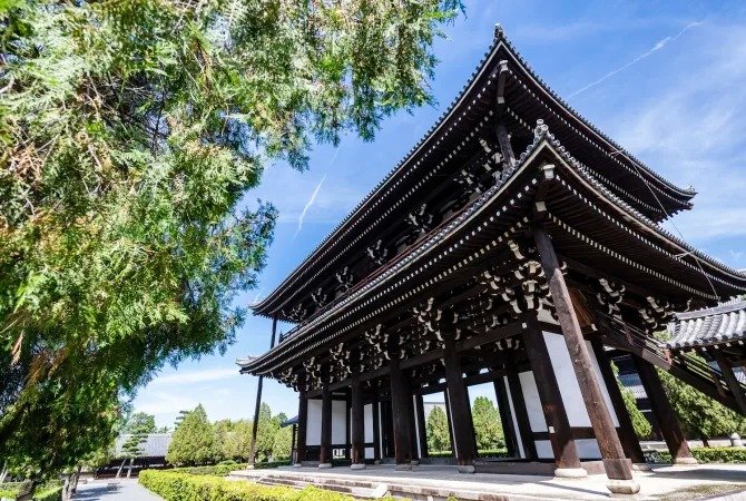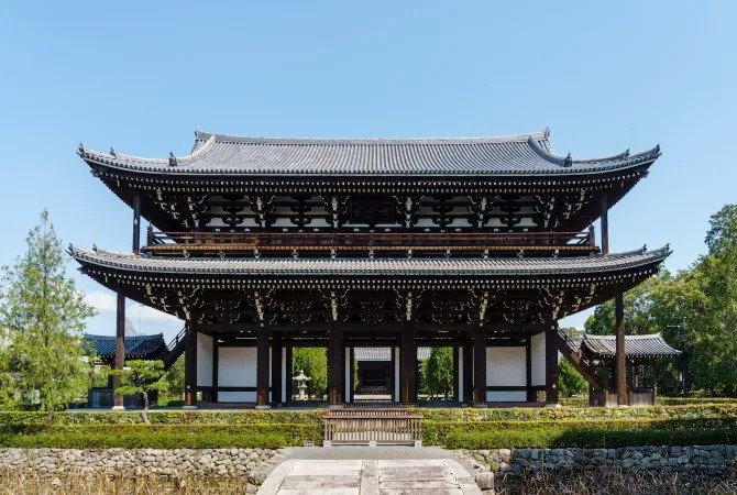 兴建于 1236 年的东福寺有 24 座小寺院,是京都的重要禅宗寺庙之一。寺庙内的建筑可追溯至室町时代(1338-1573),如禅堂(又称禅室),且为当时少见的禅宗建筑。
