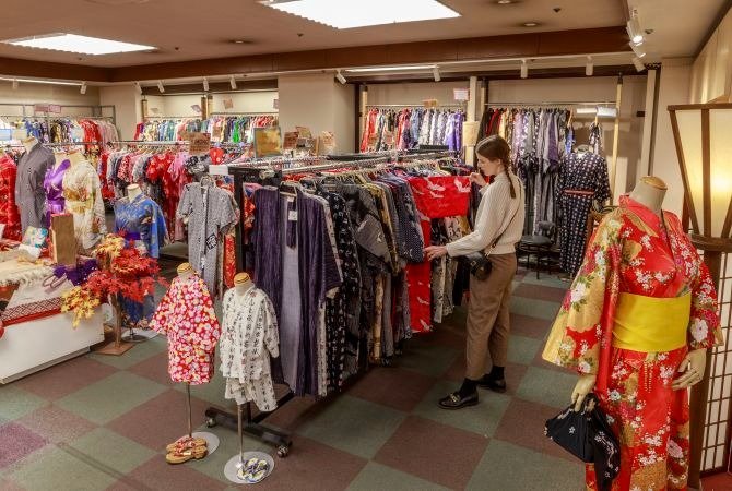 出售的纪念品包括陶器、木艺、纸工艺、织品布料、传统(以及不那么传统的)服饰、日本酒、茶、甜点等等。