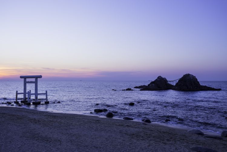 在丝岛北部的二见浦海滨有两块岩石,人称"夫妇岩"。这两块相连的石头是丝岛地区最受欢迎的景点之一,另外您也可以顺便造访丝岛半岛的美丽海滩与咖啡厅。