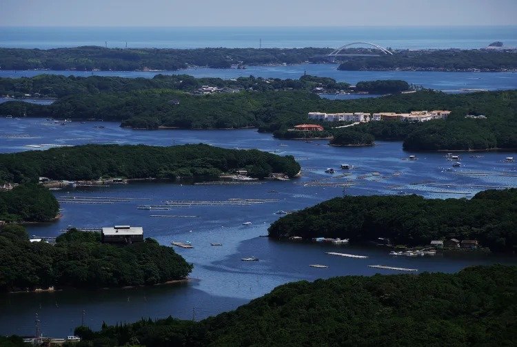 英虞湾位于伊势神宫东南方,蜿蜒的海岸线绵长壮观,岛屿和半岛一派葱茏,游客络绎不绝。