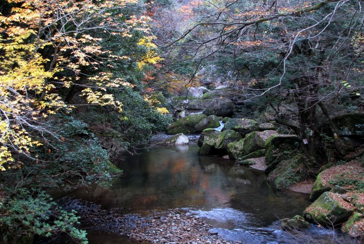这里很久以前是强盛的糸原武士家族的领地。沿峡谷延伸的步道中途有一条岔路,长 1 公里,通往这个家族已有 300 年历史的宅邸,宅邸中有古老的展品和花园,非常具有魅力。