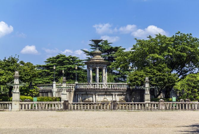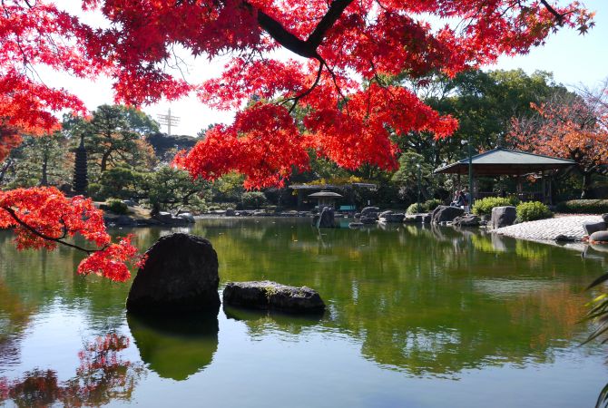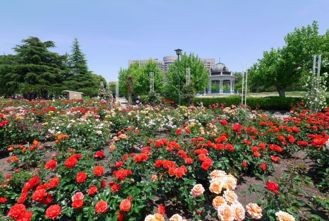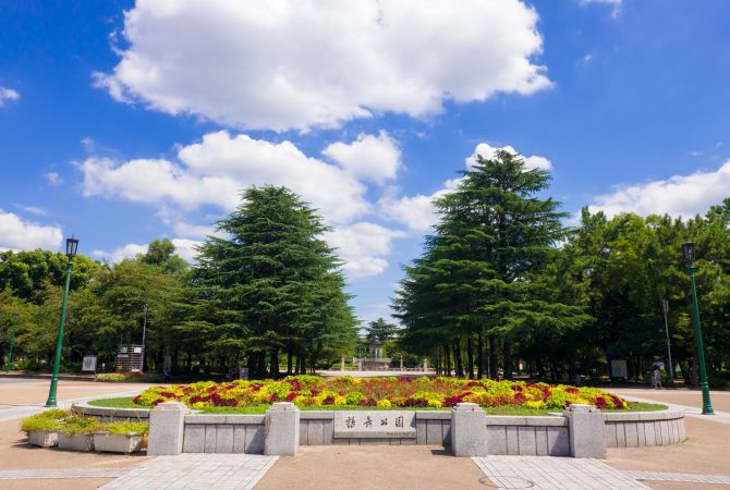 鹤舞公园是东西方美学并存的美丽呈现。在公园内,您可以看到欧式庭园的喷泉塔、花坛与玫瑰园,也会看到传统日式庭园的池塘与菖蒲。