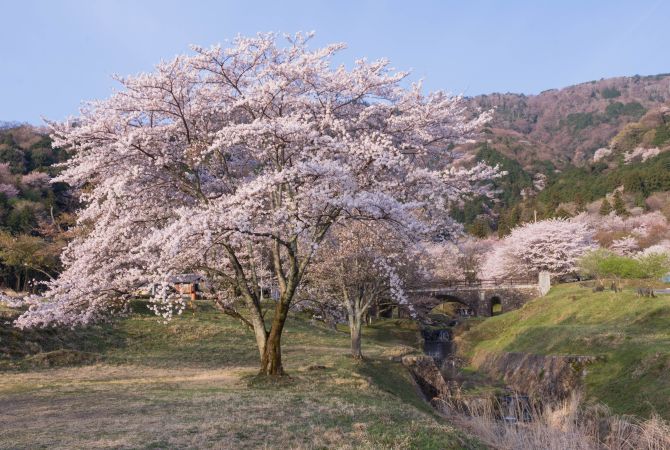 约 300 株品种与颜色各异的樱花树让这座宁静的村庄变为了风景胜地。霞间溪公园有樱树覆盖的山脉,拱形石桥下是潺潺流水,还有鳞次栉比的茶树,无论是热闹的赏花会或是在自然美景中为身心充电,这里都是一处绝佳的地点。