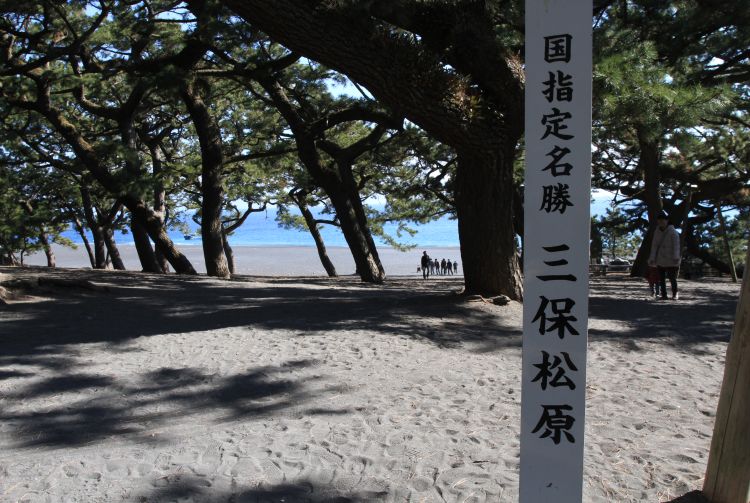大多数游客来到这座海滩是为了欣赏令人赞叹的富士山景色。浮世绘大师歌川广重在他的版画中采用了这个壮阔的景象。在您沿着海岸线的松林走过那段长路后,便会见到这片迷人的景象。