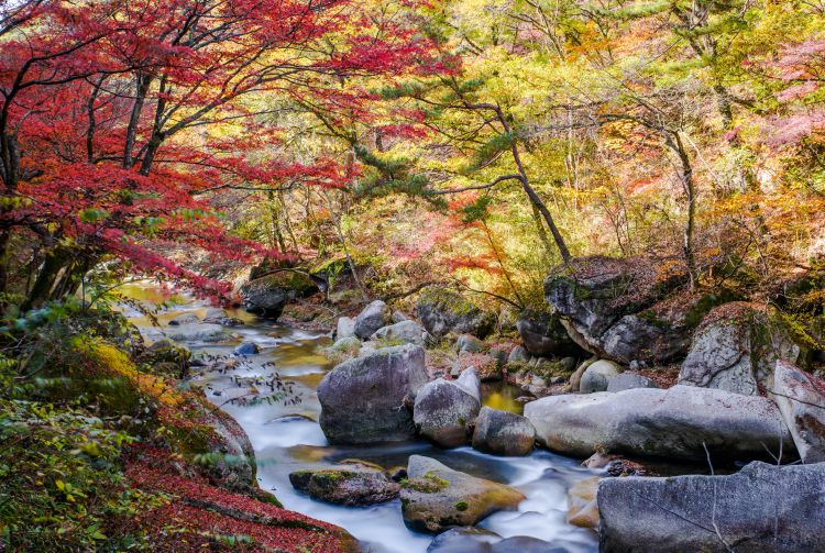 徒步是体验当地美景的最佳方式,从长潭桥开始的步道长达 4 公里,沿着步道即能到达神秘美丽的峡谷。在此地区徒步时,将能看到瀑布与河流侵袭切开的陡峭花岗岩壁以及各种形似富士山、猴子甚至是天狗(日本民间故事中的一种妖怪)的巨岩。