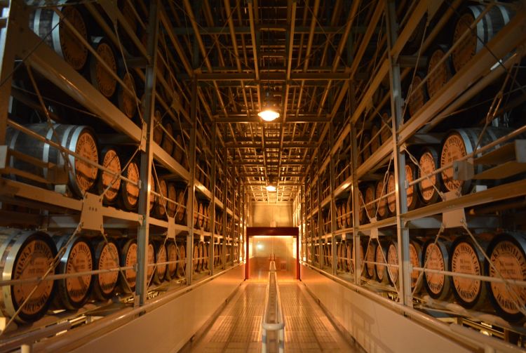 想要前往蒸馏所为数众多的仓库之一,必须搭乘蒸馏所的巴士。这是行程的重点之一,因为能闻到从成千上万酒桶中蒸发的威士忌,亦即所谓的"天使的分享",非常令人迷醉的香味。