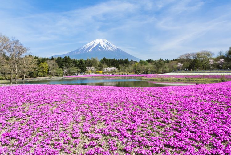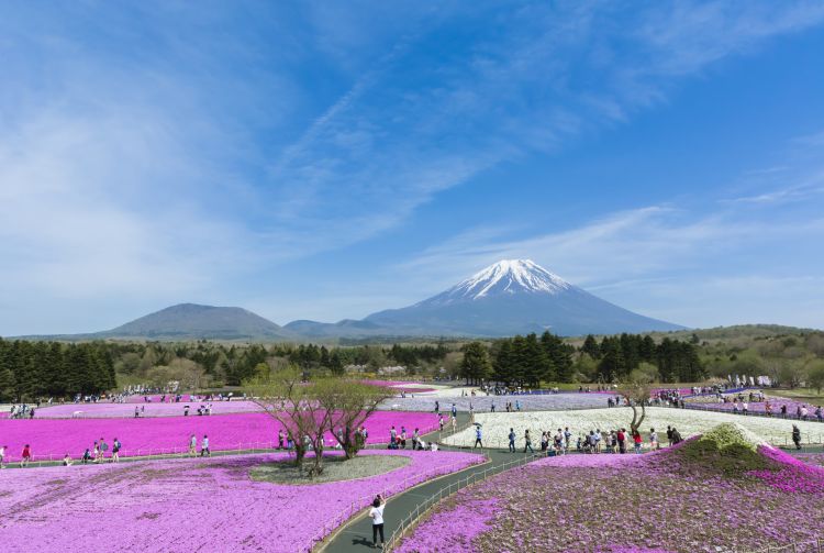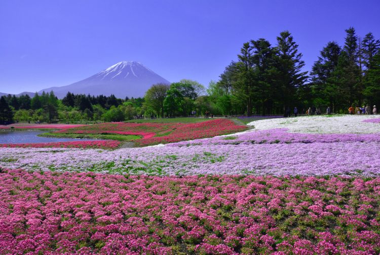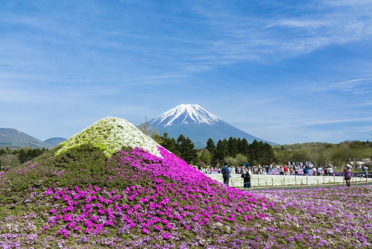 虽然盛开的樱花是日本春天的代表景色,但大多数樱花开在树上。此地的花田却是难得一见。富士芝樱祭每年吸引成千上万的游客,前来观赏芝樱盛开的短期自然奇观。盛开的时间一般都在四月中到五月底。