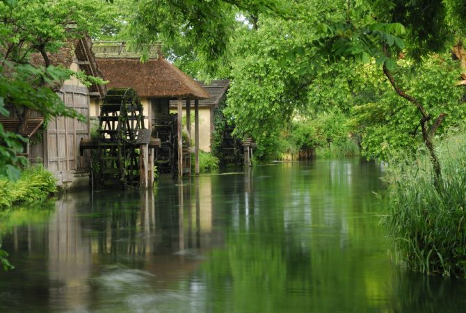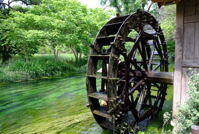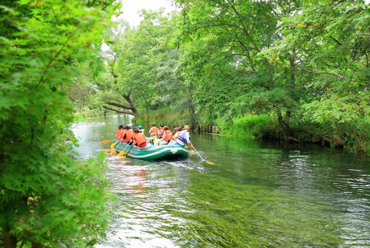 大王山葵农场中,阡陌纵横,往来便利,十分适宜悠闲漫步;黑泽明拍摄电影《梦》(1990) 时,为了布景,特意在此建造了水磨和茅屋。 这些水磨和茅屋错落有致地点缀在紧邻农场的多德川两岸。在温暖的月份里,您可以乘坐皮艇短途漂流,沿路的农场和周围环境让您体验别样风光。