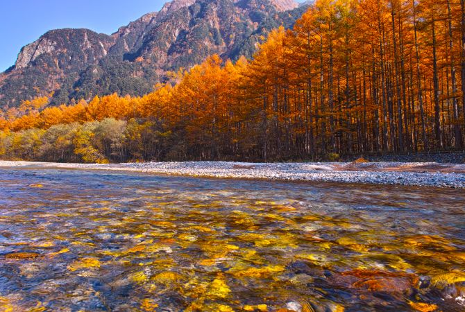 上高地 (Kamikochi) 是北阿尔卑斯山上一片尚未开发的度假胜地,拥有全日本最壮观的山间美景。无论是沿着梓川 (Azusa River) 悠闲漫步,还是是到山里徒步,上高地是您游览长野县的必去景点。