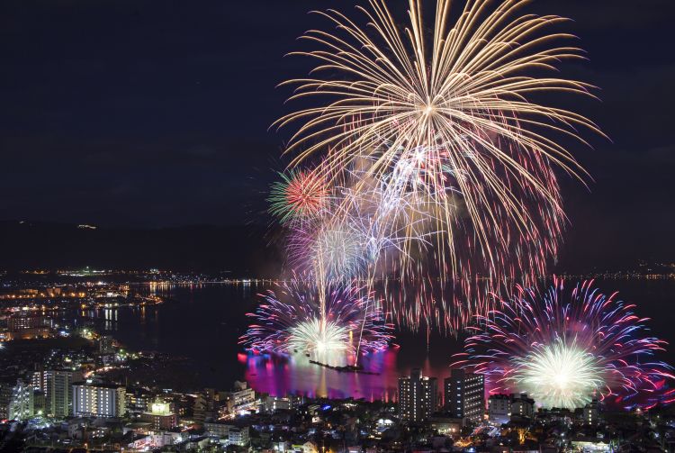 每年 8 月,诹访都会涌进大约 50 万名游客,参加诹访湖烟火大会,这是日本最华丽的烟火表演之一。九月还会举办一场大型烟火秀,选出在次年八月烟火大会中施放的新烟火。