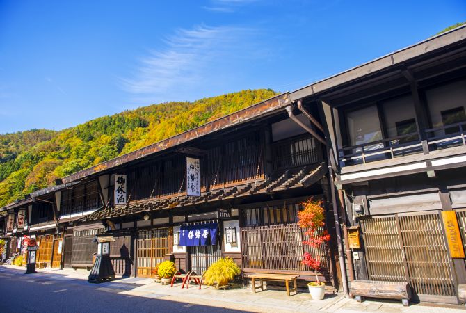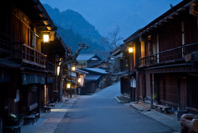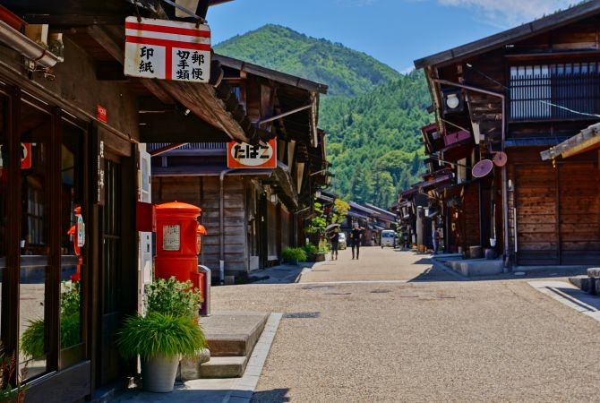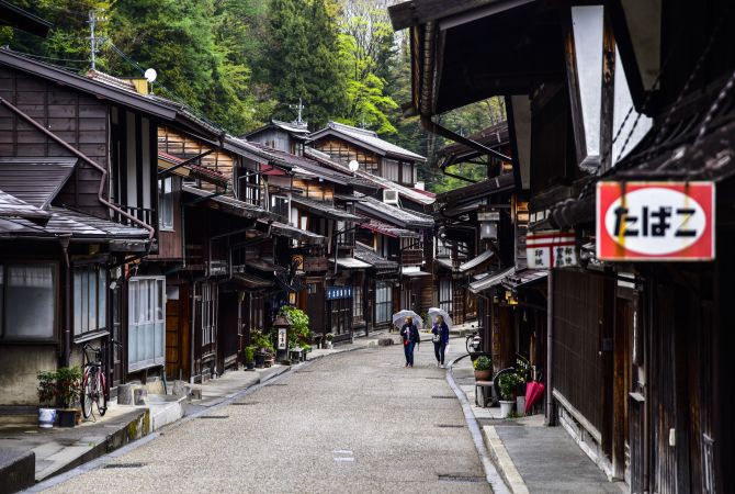 这两个驿镇是整条中山道上保存最完好的。它们的主要街道两旁排列着美丽的木屋。两个驿镇相距 9 公里,徒步需 3 小时,沿途风景如画,您可从岐阜县一直走到长野县和木曾谷。