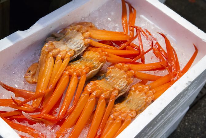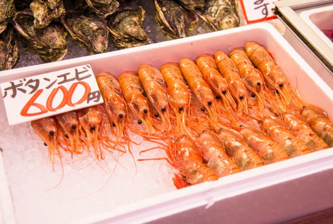 市场中约有 170 家店铺,主要经营海鲜和农产品,也售卖鲜花、厨房用具甚至时装等商品。但大多数人来这里都是为了采购新鲜食材,所以它才会有"金泽厨房"的别称。放眼望去,这里满是体型硕大的螃蟹、扇贝或大牡蛎,让人不由想要讨价还价一番,体验购物的乐趣。采购完毕,您打算如何品尝这些"战利品"?如果不喜生食,可使用市场中提供的烧烤设施自己动手,或者选择近江町市场内的餐厅,由店家为您加工烹制美味海鲜。市场共有两层,最优质的新鲜海产主要集中在一楼。