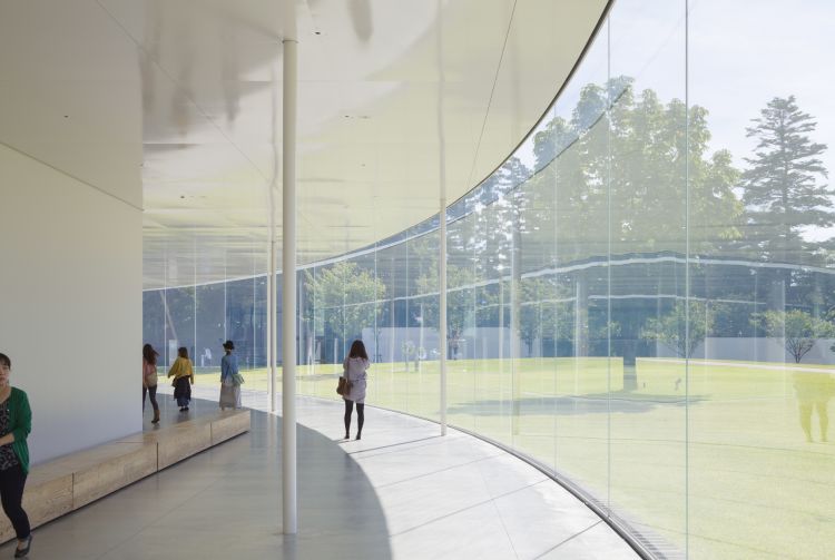 美术馆建筑本身就非同凡响;玻璃幕墙完全呈圆形,没有常规入口,鼓励参观者从各个方向接触艺术。国际知名建筑师、SANAA 建筑单位创始人妹岛和世和西泽立卫凭借这座建筑的设计荣获 2010 年普利兹克建筑奖。