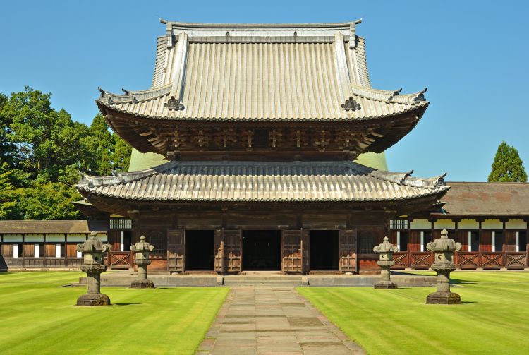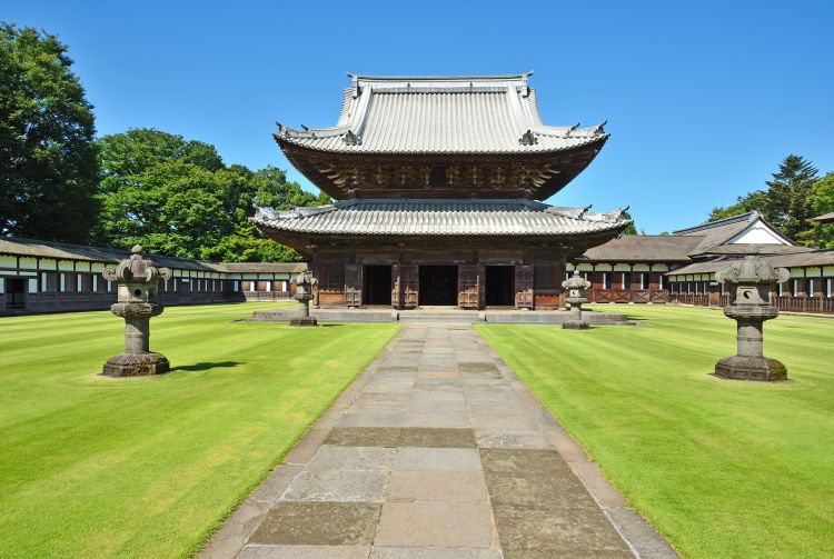 进入瑞龙寺寺院前,要跨过总门和山门,这两道大门从侧面展示了瑞龙寺的建筑特色。山门比总门更加高大,山门两侧矗立着两尊凶悍的金刚像。寺院景观特意选取各种砾石,经过精心布置,打造出日本禅宗寺院的经典风格。
