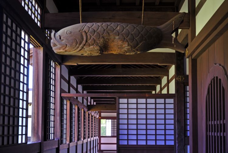 - 佛殿庄严的瓦葺屋顶及其参拜物:一尊释迦牟尼像