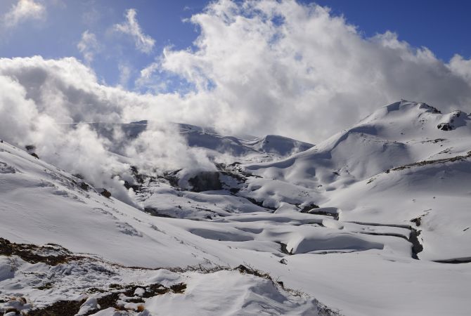 在这里可以看到火山剧变的遗留痕迹,火山运动塑造了硫磺岩构成的地狱谷和附近立山火山口的地理形态。