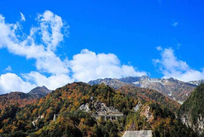 黑部水坝高达 186 米,是日本最高的大坝。大坝的修建历时 7 年,于 1963 年竣工。如今,它为一家水电站的运转提供动力,为关西地区的供电助一臂之力。从黑部大坝站爬上 220 级台阶就到了一座观景台,可以欣赏大坝及周围区域的壮观全景。