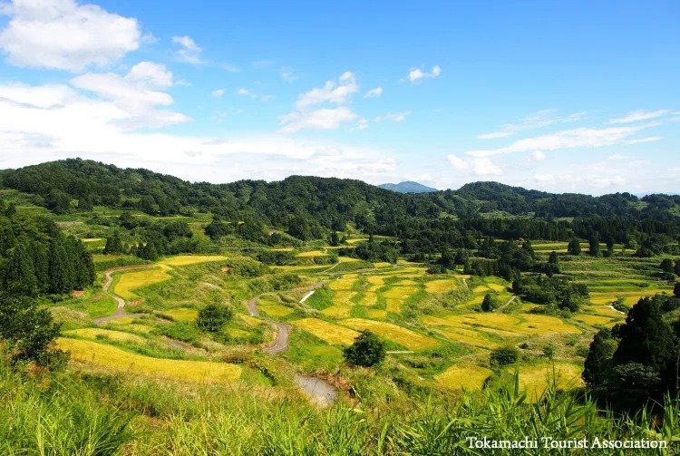 您会发现,新潟到处都是平坦宽阔的稻田,但是十日町市的稻田却沿着山坡绵延而上。一层层稻田一年四季都自成美景。
