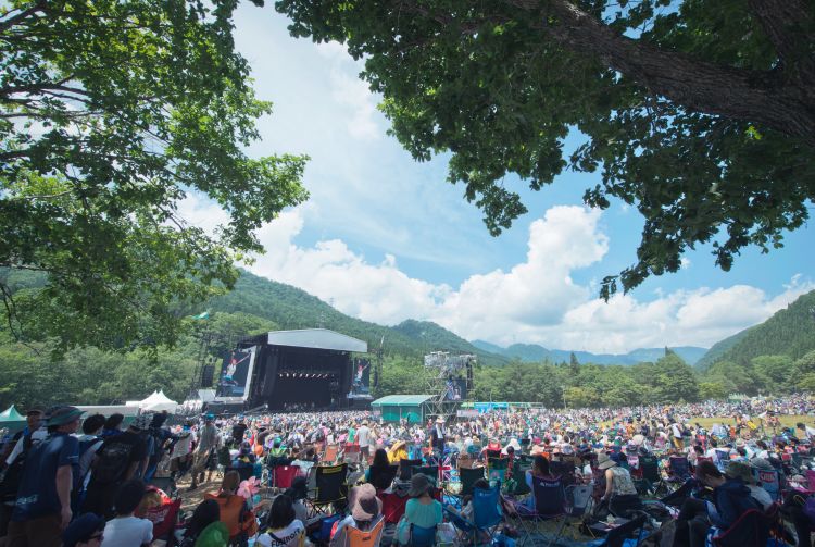 富士摇滚音乐节在七月举行,为期三天,吸引成千上万的乐迷来到度假村