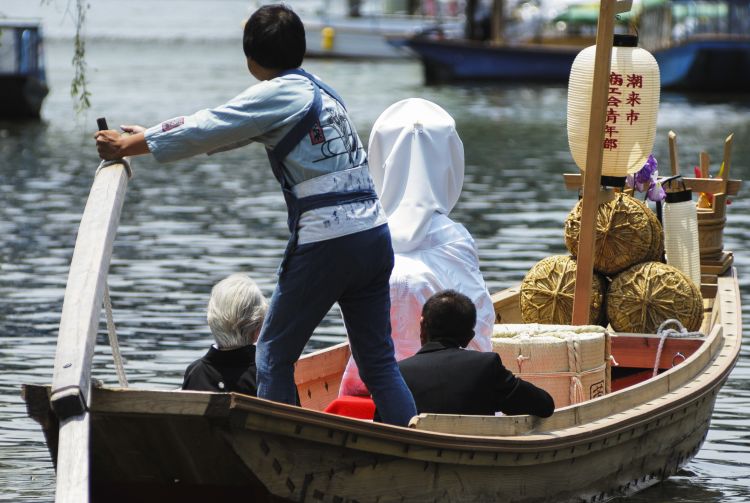 庆典的主要活动是出嫁小舟。在船只为主要交通方式的潮来,这是很久以前留下的传统。新嫁娘会和婆家人登上小船,顺着运河摆渡,象征自己嫁入新郎的家庭。