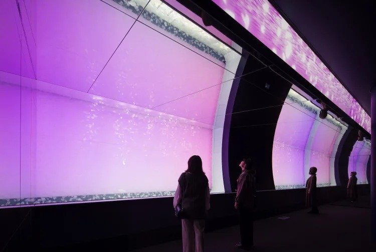 整个园区分为九个不同的区域,能观赏到许多罕见的生物种类。"相遇海域"是一个重 1,300 公吨的大水槽,里面有 20,000 只、80 种鱼类自在悠游。在另一个同样令人印象深刻的巨大水槽中,可以观赏到罕见的曼波鱼,欣赏其独特的面部表情。