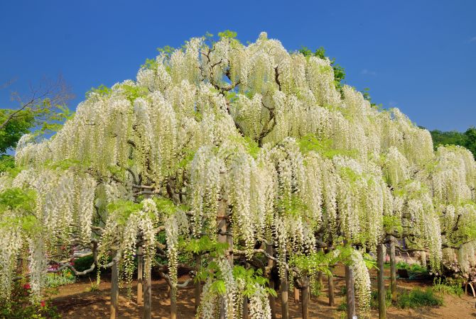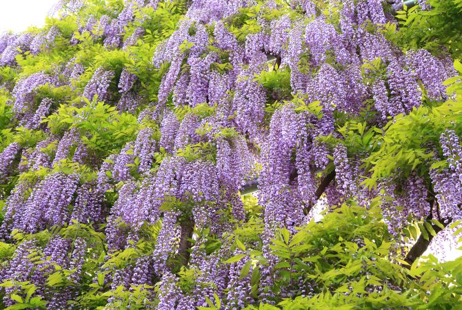 四月是日本万象更新的月份:学生们开启了新学期,毕业生找到了工作,樱花绽放出绯丽的花瓣,然而这花瓣也不过在短短七天之后就消逝无踪。许多日本人会在四月兴致勃勃地参加赏樱大会,所以,到五月初,人们成群结队地去足利花卉公园观赏紫藤也没什么大惊小怪的了。