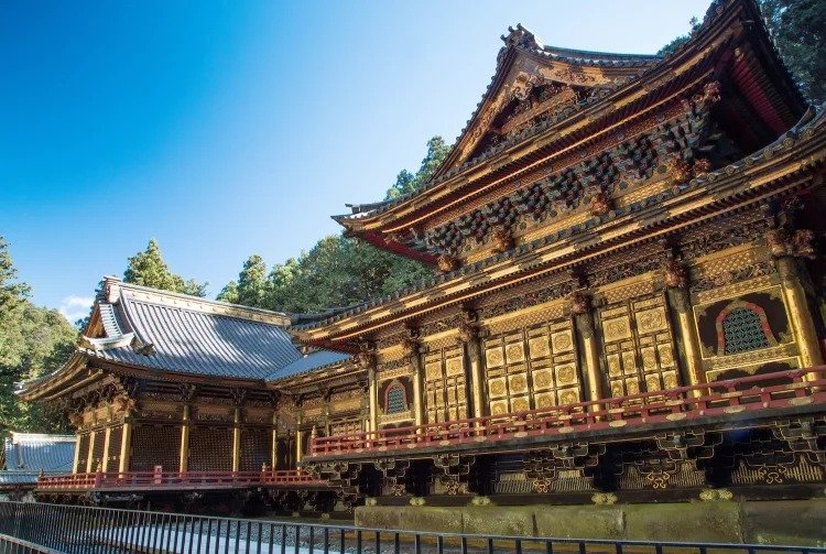 如同附近的东照宫,供奉寺庙后山三尊佛像的轮王寺因为金碧辉煌的建筑而显得独一无二。轮王寺由胜道上人创立,为日光地位最崇高的佛寺。