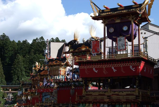 每年的 10 月 9 日与 10 日,成千上万的游客涌入高山市,参加盛大的秋之高山祭。这个祭典是为了表达感谢,也标志着要开始为过冬做准备了。