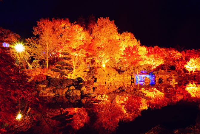 这座公园冬春两季都有樱花盛开,7,000 棵冬樱营造出了梦幻般的美景。