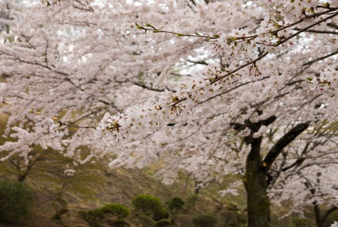 公园内有 3,000 棵染井吉野樱,还有杜鹃花和蜡花