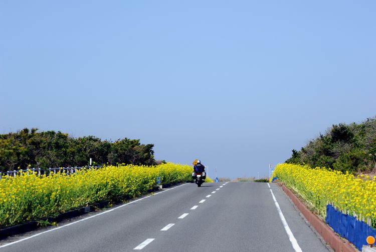 虽然这里一年四季都会绽放美丽的花朵,但油菜花盛开的冬天才是游览房总赏花路线的最佳时机。当油菜花盛开时,您就能在道路两旁看到一整片明亮的鲜黄色与橙色花海。