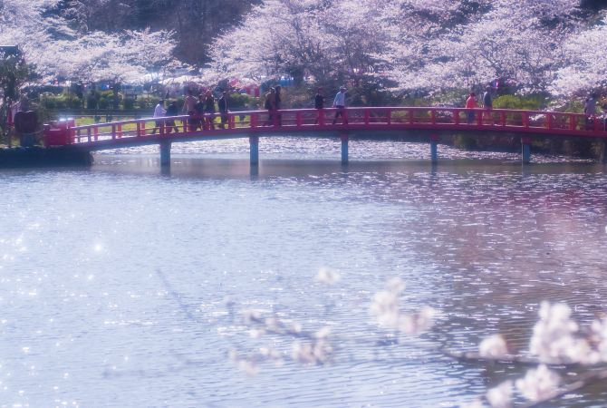 茂原公园位于茂原市中心,绿意盎然。公园占地 16 万平方米,能让人远离都市喧嚣。园内一年四季繁花盛开,还有风景优美的步道和位于中央的大池塘。