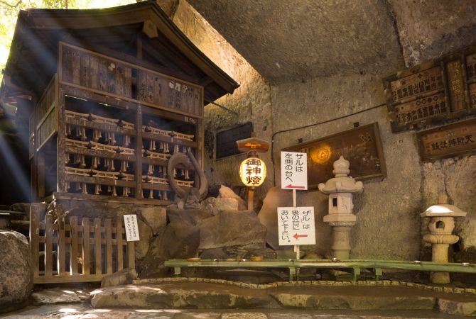 钱洗弁财天神社设于洞穴中,这个气氛独特的洞穴有一股泉水在洗槽中流动。信徒认为,使用此泉水进行洗钱仪式能带来更多的财富。