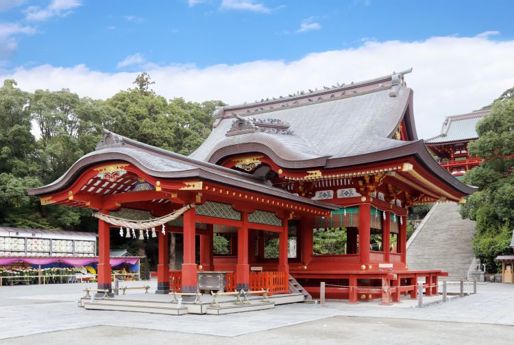 这座供奉武士守护神八幡神的美丽神社至今已有超过 800 年的历史。您可以在此享受一段宁静的时光,尽情观赏路途中的美景。