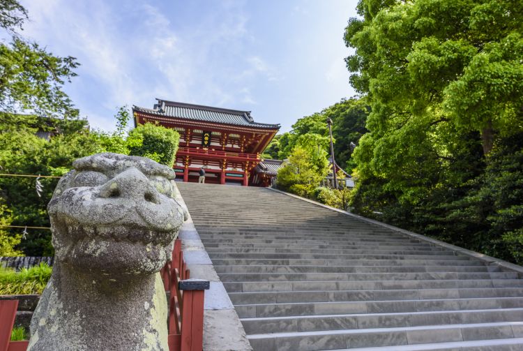 从东京搭乘 JR 横须贺线约需 1 小时车程。从 JR 镰仓站出发,步行 10 分钟即可抵达鹤冈八幡宫。