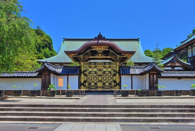 搭乘 JR 横须贺线,至鎌仓站以北的下一站北鎌仓站下车,步行 15 分钟即可抵达建长寺。