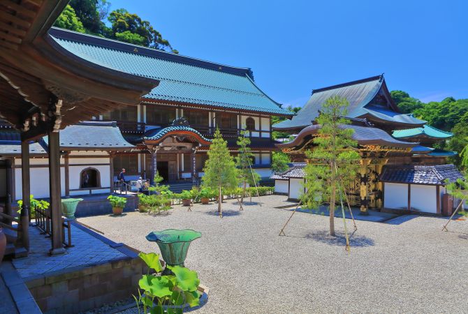 鎌仓中卓尔不凡的建长寺,是最古老的禅寺,拥有各式各样的庙宇建筑和附属庙宇。如果运气好,甚至可以在寺庙中位置最高的殿阁中眺望到富士山。