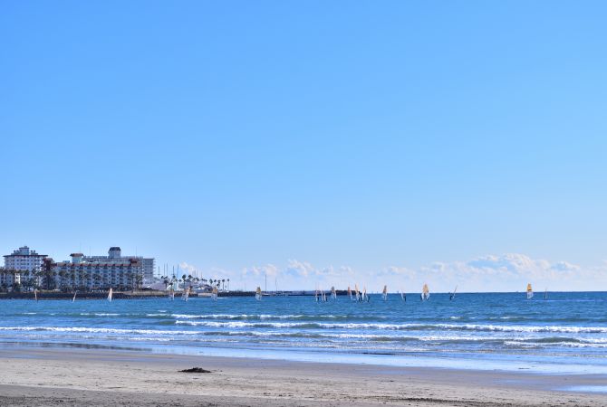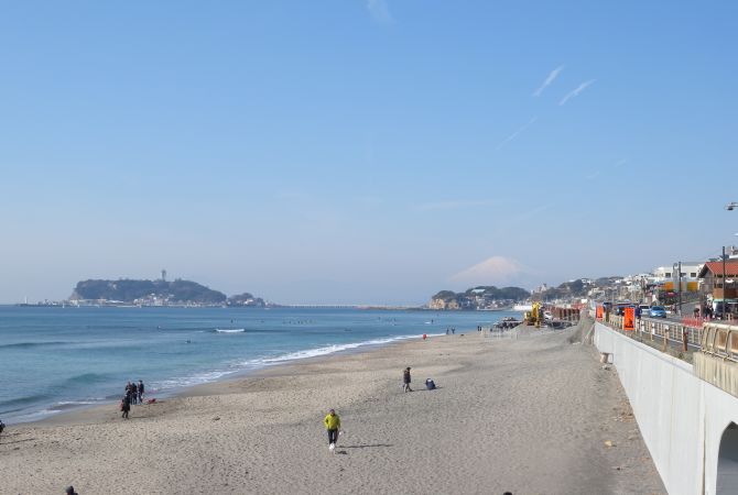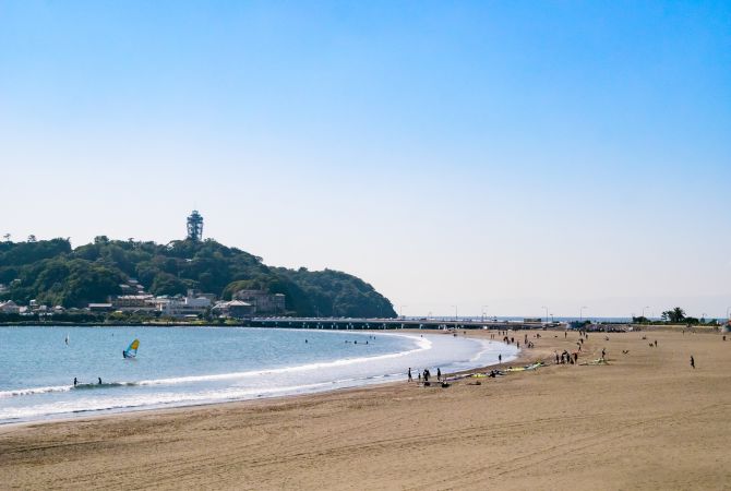 镰仓有三座海滩:由比滨、材木座及腰越。其中,前往由比滨最为方便。从镰仓市中心步行一小段路即可抵达。从另一个方向前往高耸的大佛也只需要 20 分钟。