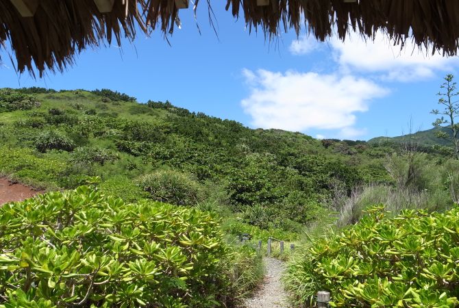 乳房山位于母岛中央,海拔 463 米,是小笠原的最高峰。登上乳房山,欣赏岛屿前方的海天一色。步道沿途有许多机会可以观察母岛上丰富多样的植物。