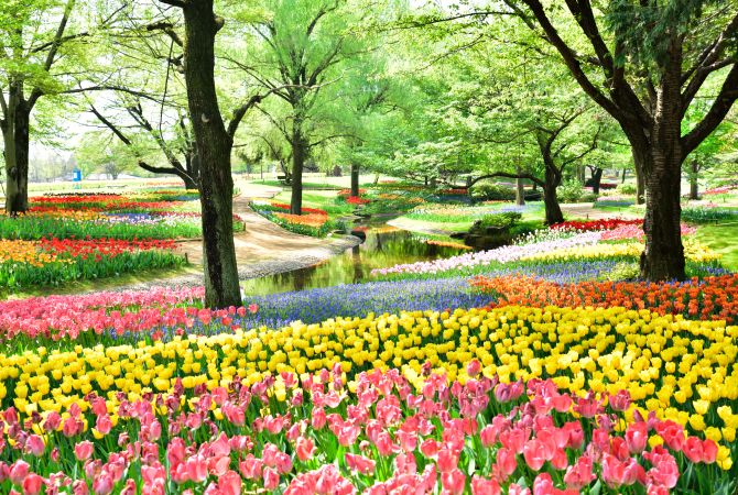 东京立川地区的昭和纪念公园占地宽广,须安排一整天的时间才能徒步探索整座公园。公园花卉种类繁多,一年四季繁花似锦。在秋天,银杏树一字排开,金黄耀眼,堪称人气秋日美景。在冬天,公园灯饰如梦似幻,熠熠生辉。