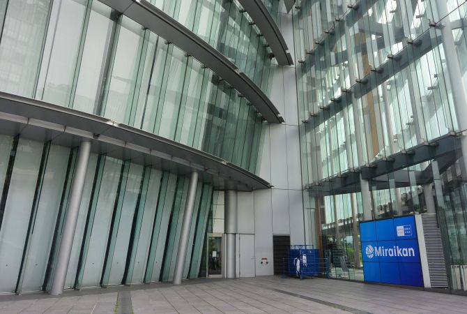 日本科学未来馆 (Miraikan) 设有一个研究区,其中有多个项目正在开发中。研究涵盖广泛的先进科学技术,如机器人、生命科学和材料科学,并向公众开放。
