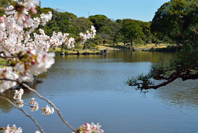 与东京其他庭园相比,滨离宫恩赐庭园并非以春花和秋叶而著称。但每年春季,也就是二月底到四月初,这里依然会有大量梅花树和樱花树盛开,粉色和白色的花朵竞相绽放。您可以观赏繁花盛开的美景。秋季也是如此,枫树和银杏会用艳丽的红色和黄色装点这座庭园。