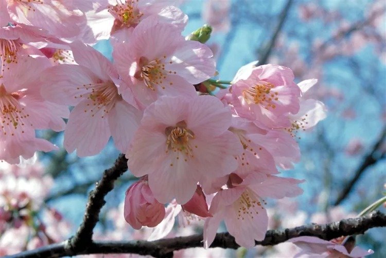 这里有很多樱花品种,包括二月开花的冬樱、三月底到四月初开花的染井吉野樱、四月中旬开花的一叶樱和关山樱以及四月底开花的梅护寺数珠挂樱(梅护寺的樱花)。