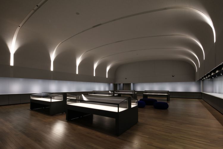 在三楼展览室特别设计的展示柜中见证日本刀剑之美(付费入场)