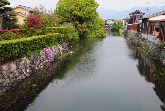 蓝场川流经传统江户建筑之间的小巷,是萩市最迷人的景色。这条建于 1744 年的水道最早用于运输货物,支撑着这座城下町蓬勃发展的经济。