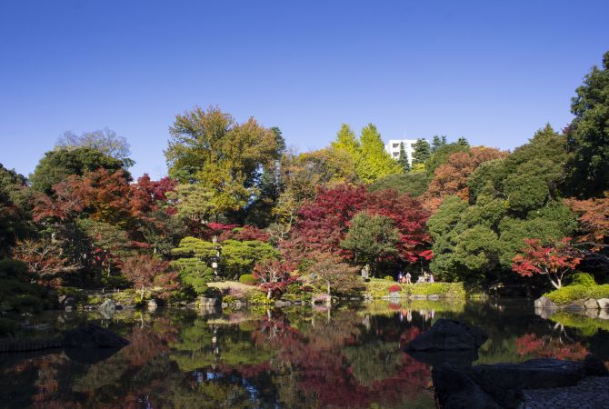 庭园中央有一个称为"心字池" 的池塘,形状如同汉字"心"的草书体